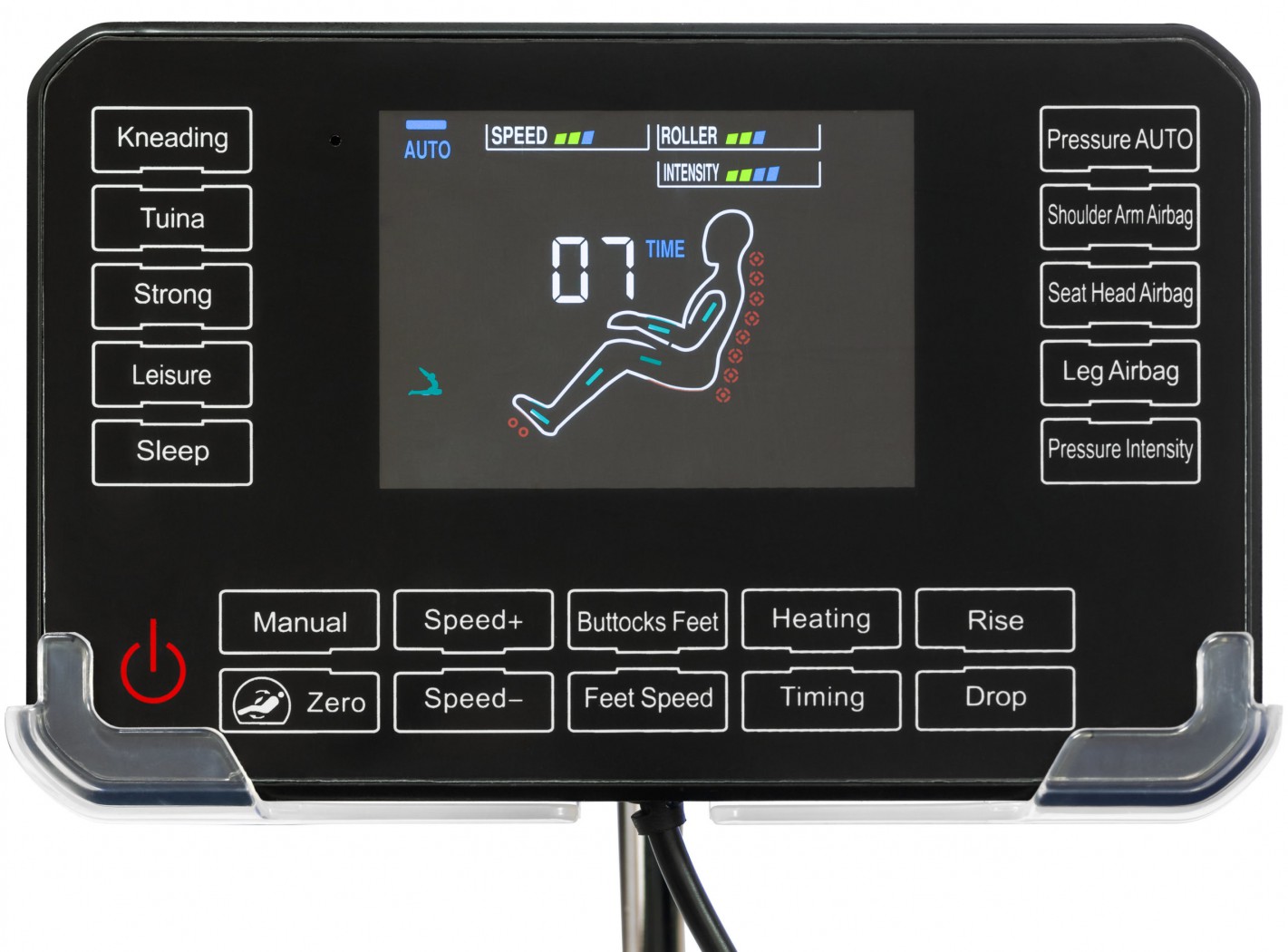 Полный массаж тела – роликовая система и воздушные компрессионные подушки охватывают все зоны: от шеи до стоп.