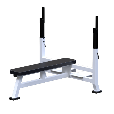 Регулируемые стойки для штанги позволяют точно настроить высоту под рост спортсмена и специфику упражнения. Рифленая платформа для ассистента обеспечивает устойчивое положение при страховке.