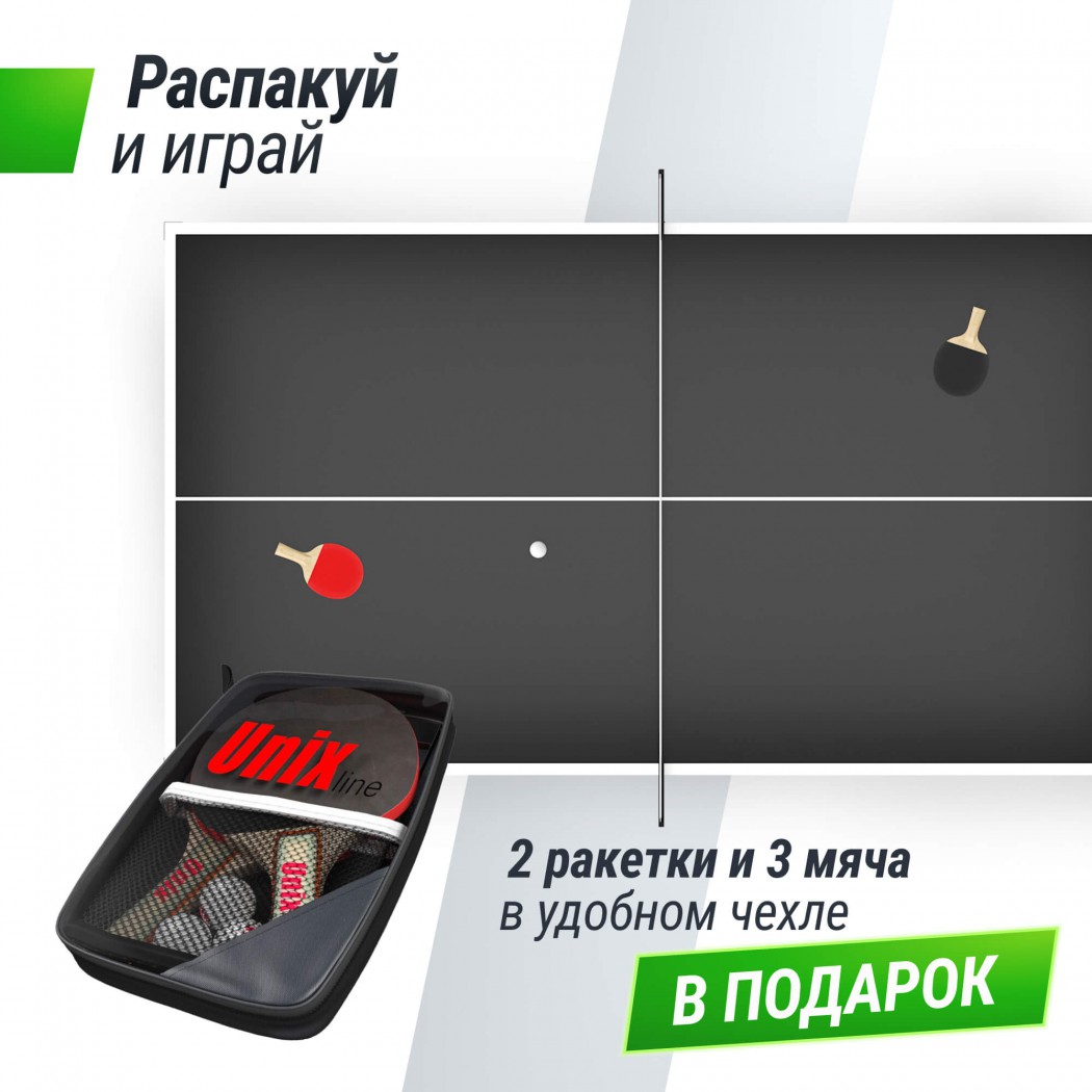 Сетка из нейлона с надежными фиксаторами, а также набор для игры в настольный теннис: 2 ракетки, 3 шарика в сумке, поставляются в комплекте со столом. Обращаем ваше внимание, что внешний вид изделия может отличаться в зависимости от наличия на складе.
